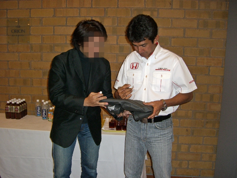 佐藤琢磨は時間の都合上サインは貰えなかったのですが、HNはどうしても琢磨選手に聞きたいことがありました。
