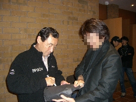 佐藤琢磨は時間の都合上サインは貰えなかったのですが、HNはどうしても琢磨選手に聞きたいことがありました。
